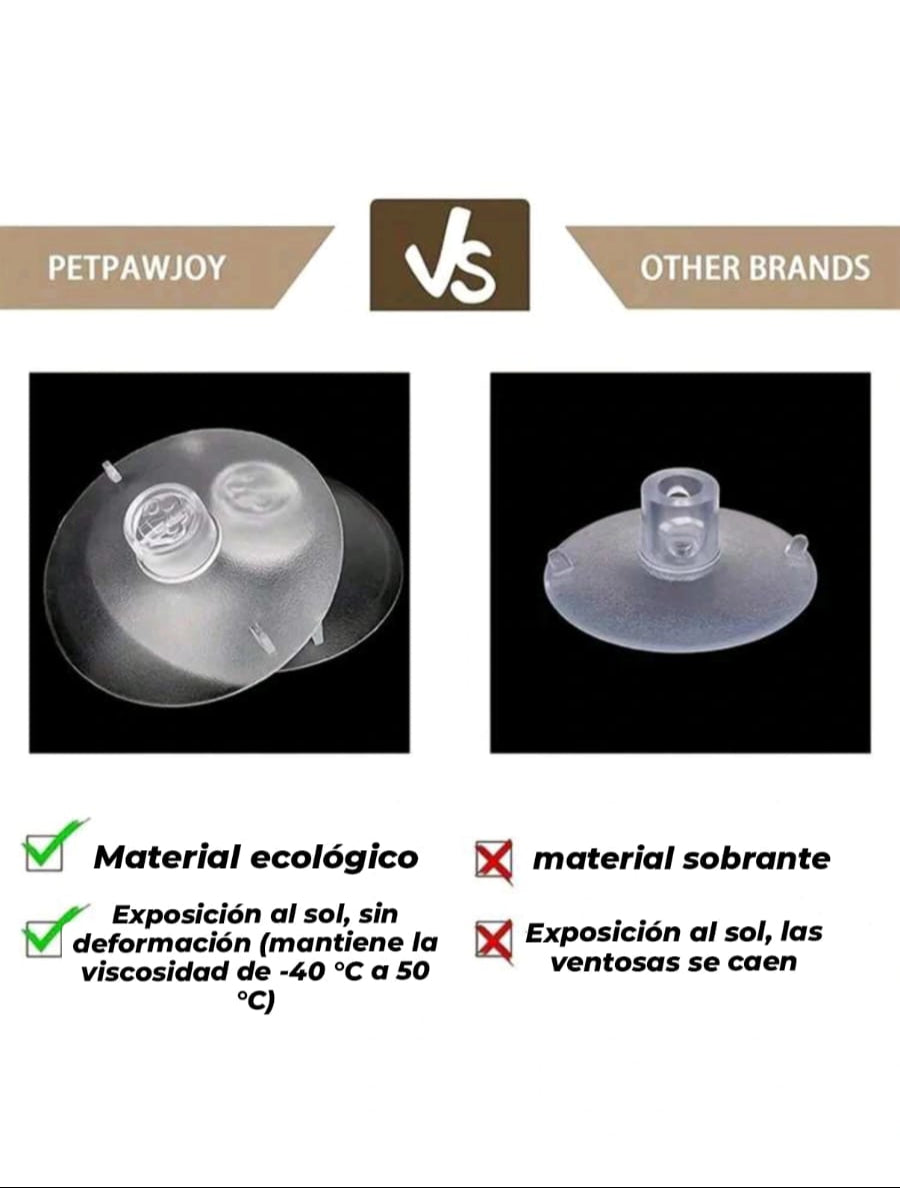 Equipada con potentes ventosas de alta resistencia, soporta con seguridad incluso a gatos grandes, manteniéndose firme en vidrio y superficies lisas. Su superficie acolchada y transpirable proporciona máximo confort, mientras que su diseño minimalista se integra perfectamente con la decoración.